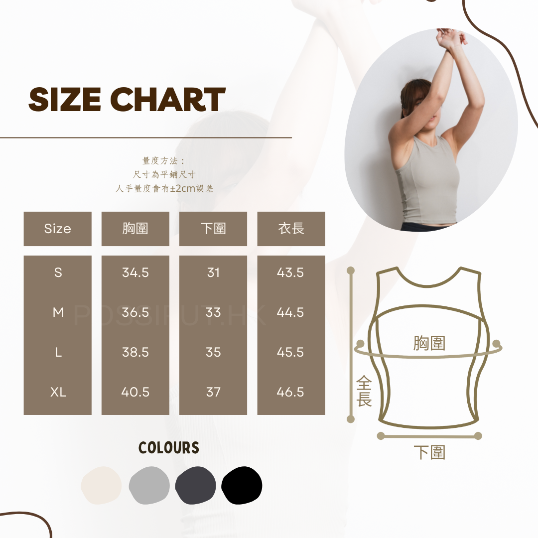圓領羅紋長背心BRA TOP